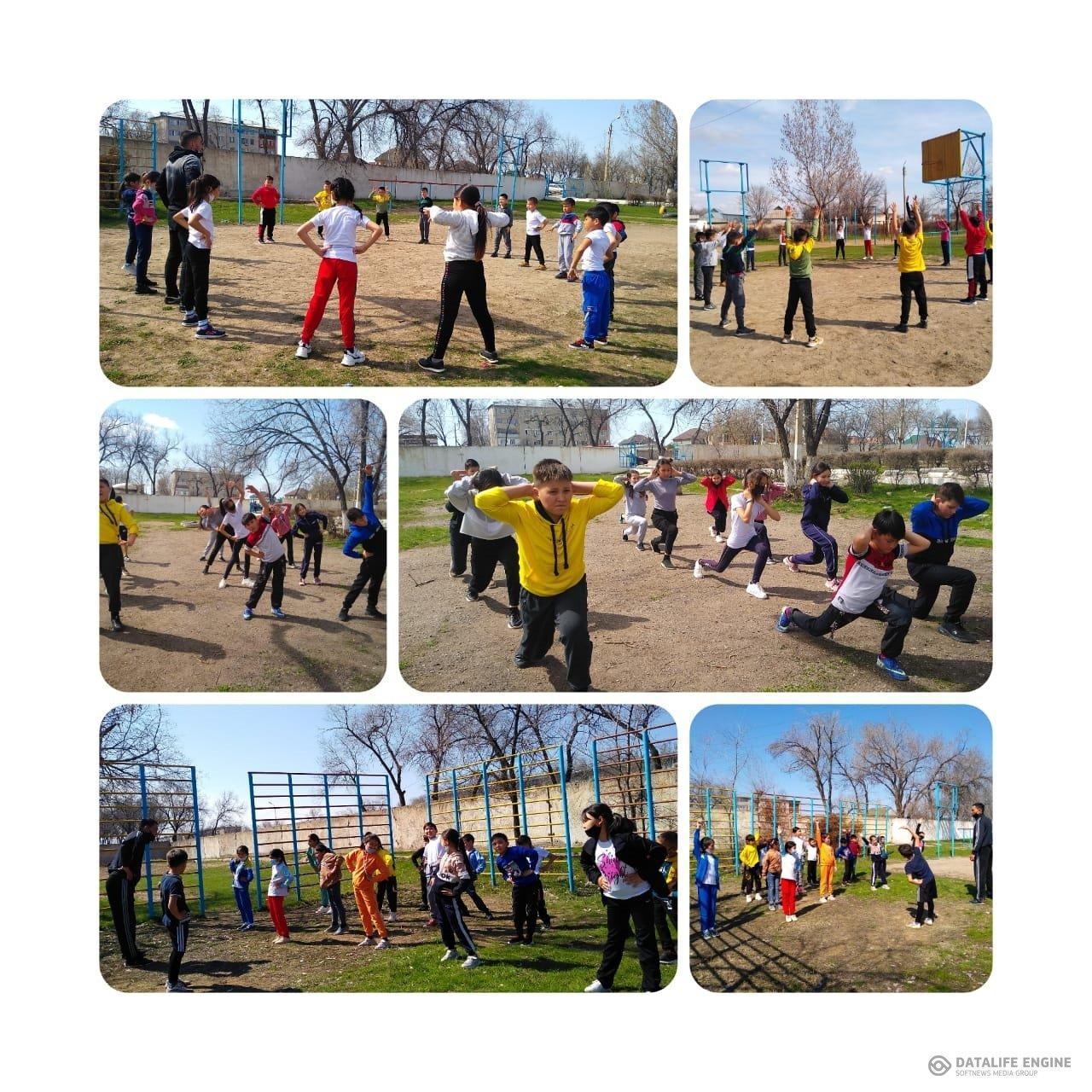 7 апреля-Всемирный день здоровья! Учителя физической культуры средней школы имени Толе би провели комплекс гимнастических упражнений и спортивные мероприятия:  футбол среди девушек 8 классов, подвижные и эстафетные игры среди учащихся начальных классов!