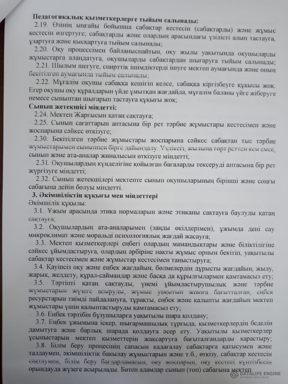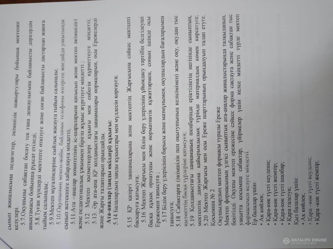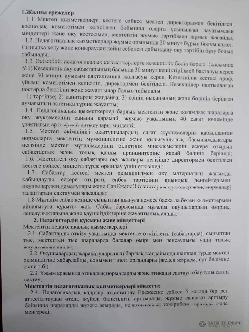 » Шу қаласы, Төле би атындағы орта мектебінің ішкі тәртіп Ережесі