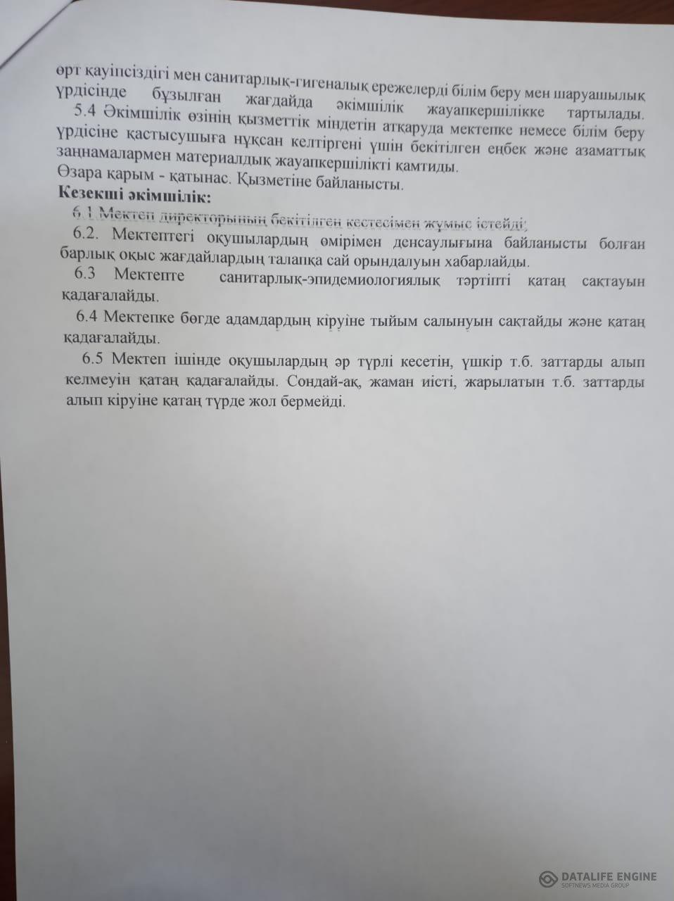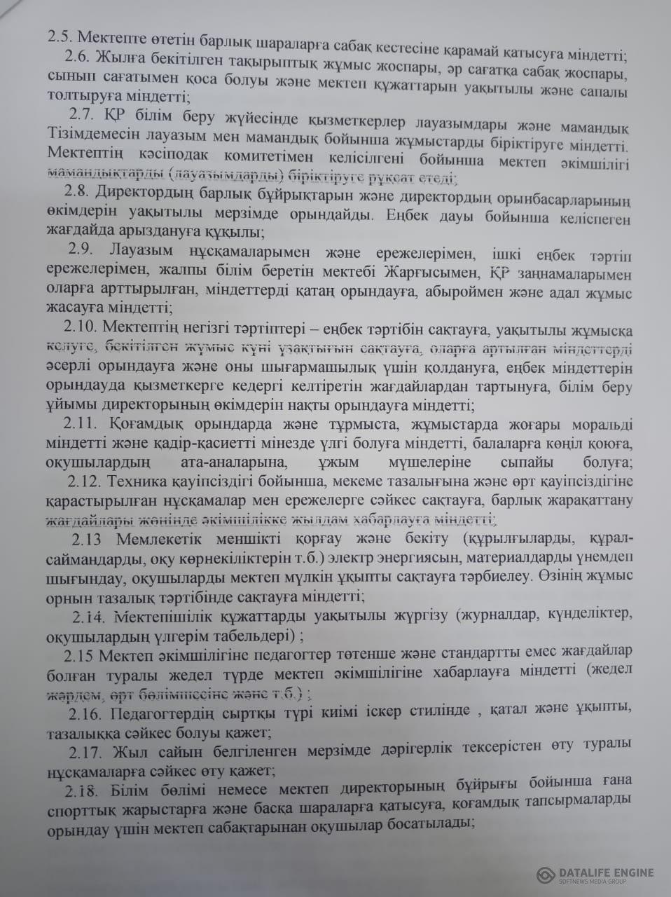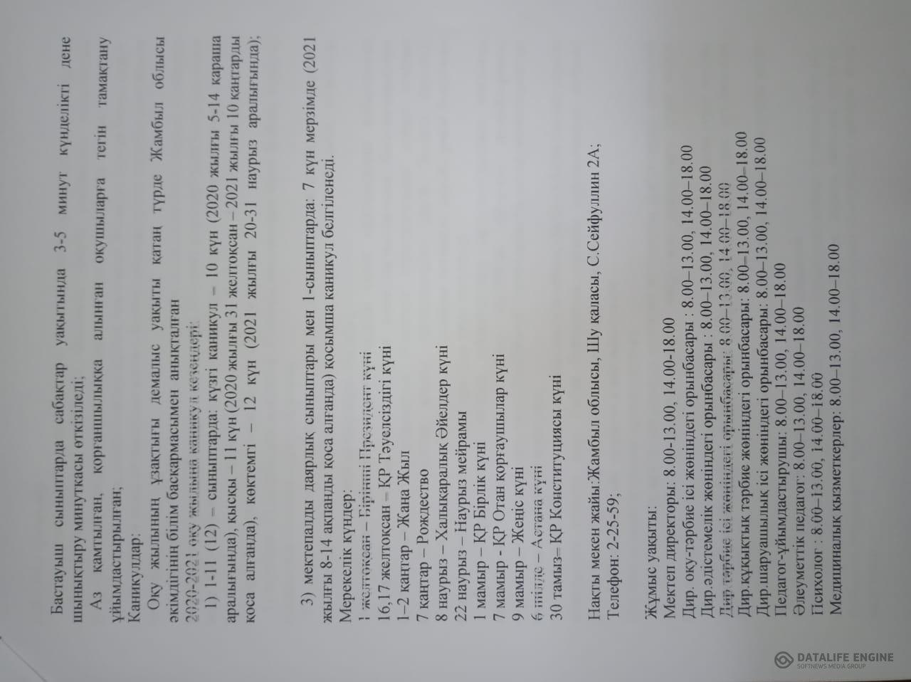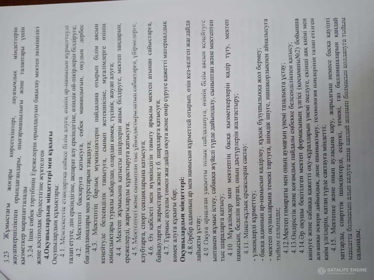 Шу қаласы, Төле би атындағы орта мектебінің ішкі тәртіп Ережесі » Төле би атындағы орта мектеп