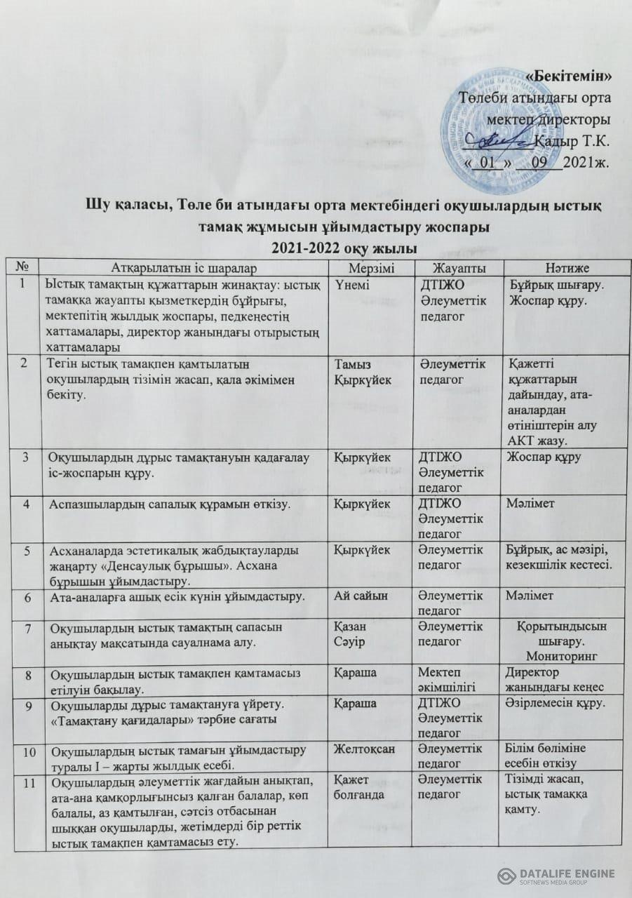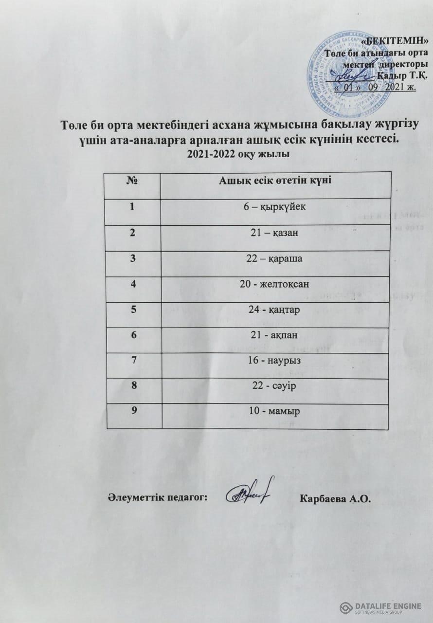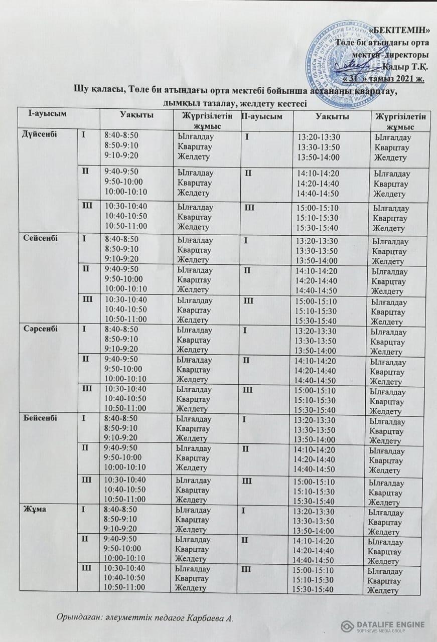 Шу қаласы Төле би атындағы орта мектепте 2021-2022 оқу жылының қыркүйек айынан бастап мектеп асханасы өз жұмысын бастады