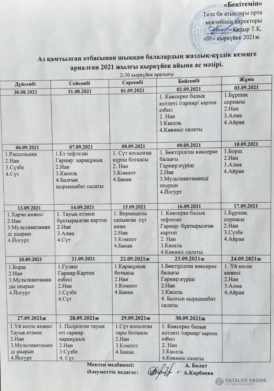 2021-2022 оқу жылына тамақтандыруды ұйымдастыру