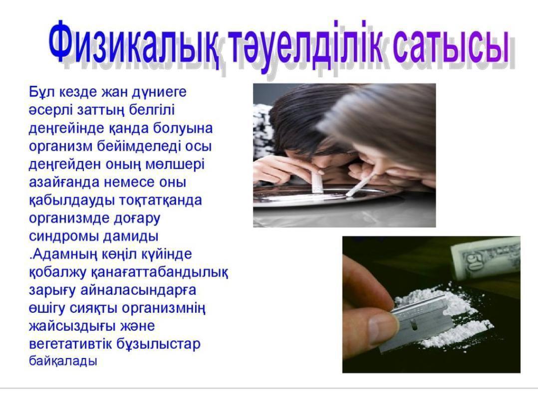 Егер балаңыз есірткімен қатынасы болса, есірткіні қолданудың алғашқы белгілері туралы ақпарат арқылы сіз балаңызға дәл уақытында көмек көрсете аласыз.