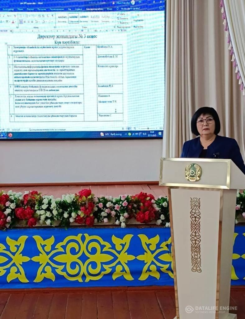 2023.10.30 күні директор жанындағы кеңес өтті.Қазан айындағы директор жанындағы кеңестің жұмыс жоспарында қойылған Электронды "kundelik.kz жүйсімен жұмыс, Математика сабақтарында оқушылардың функционалдық сауатылығын қалыптастыру, ИФМ пән айлығы