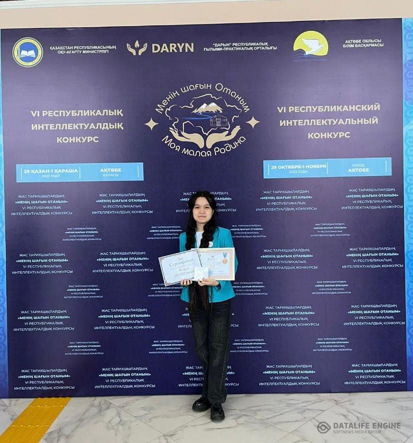 Төле би атындағы орта мектебінің 10 сынып оқушысы Балтабай Арайлы Ақтөбе қаласында өткен 9-10 сынып оқушыларына арналған жас тарихшылардың “Менің шағын Отаным” атты VI республикалық интеллектуалдық конкурсының ІІІ дәрежелі жүлдегері атанды. Сонымен қатар, 10 000 теңгелік сертификатпен марапатталды. Жетекшісі: тарих пәні мұғалімі Асилбекова Ақтолқын Торебековна. Мектебіміздің мақтанышы Арайлыны жеңісімен шын жүректен құттықтаймыз!