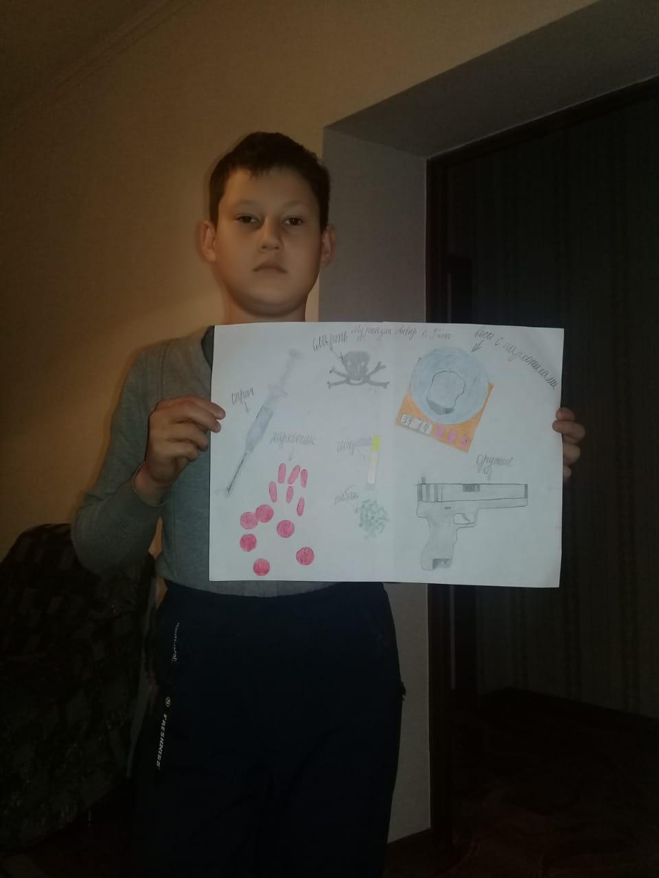 Шу қаласы, Төле би атындағы орта мектебінде Нашақорлықтың алдын алу мақсатында 6 сынып оқушыларымен "Нашақорлыққа жол жоқ!" атты тақырыбында сурет байқауы өтті. Мақсаты оқушыларды есірткі заттарынан өздерін аулақ ұстауға,өз денсаулықтарының қадірін жете білуге тәрбиелеу.