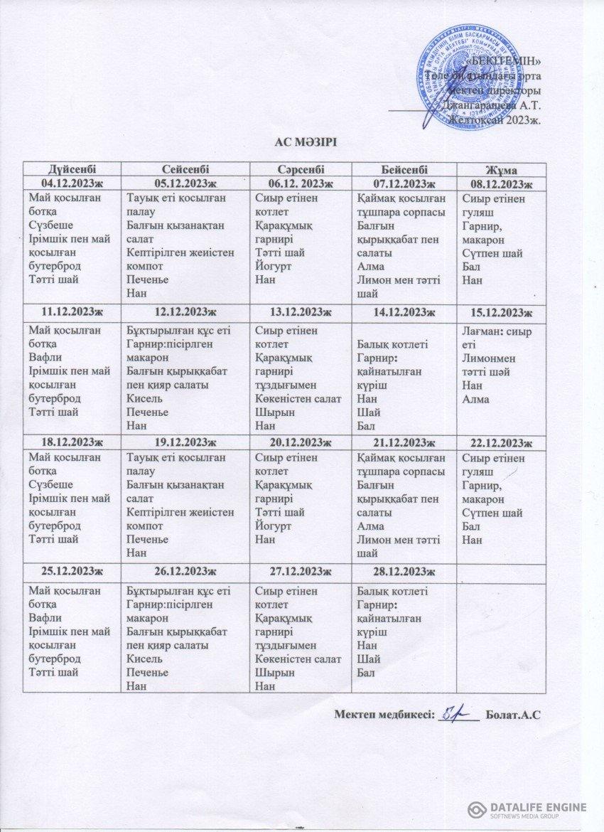 Желтоқсан айына ас мәзірі » Төле би secondary school