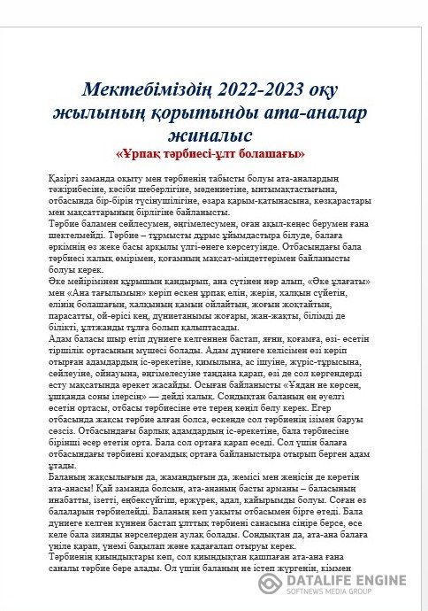 Мектеп директоры А.Т.Джангарашеваның 2022 - 2023 оқу жылы бойынша қорытынды есебі admin 25-05-2023, 09:16 167 Ақпарат