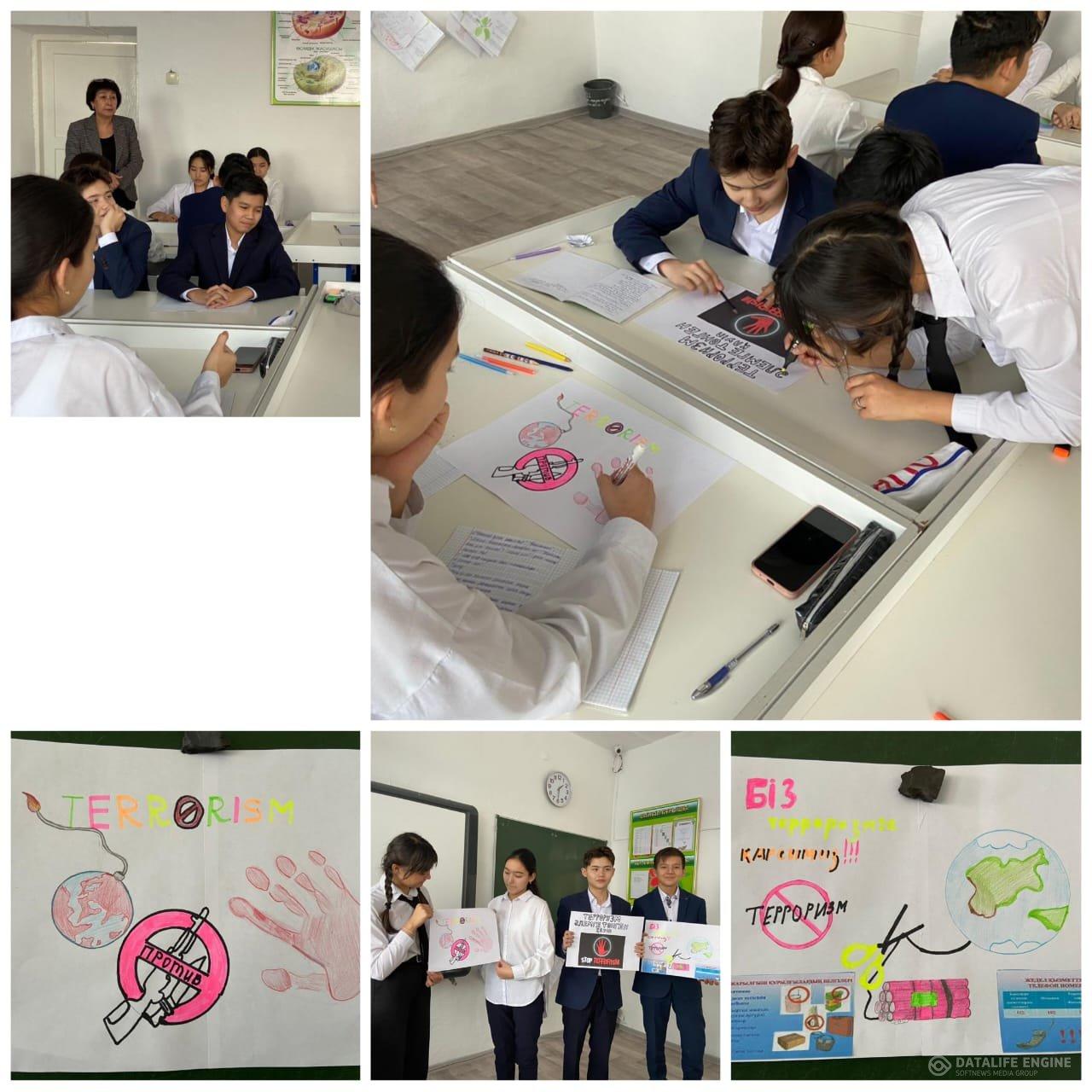Төле би атындағы орта мектебінде "Экстремизм мен терроризмге жол жоқ" науканы аясында 9 сынып жетекшісі К.Джамбершиева "Терроризм бәрімізге төнген қауіп" тақырыбында тәрбие сағатын өтті.