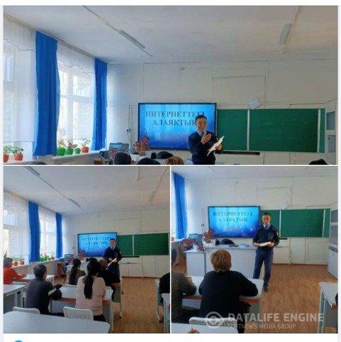 13 числа текущего года в средней школе им.Толе би в такырыбе "мошенничество в Интернете" инспектор ЮПТ УМПС Чуйского АПБ капитан полиции А. Пирматов провел разъяснительную работу с коллективом школы.