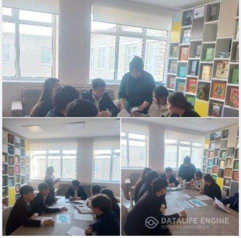 в соответствии с годовым планом работы по пропаганде государственных символов РК педагог – организатор Бекишева Д. С. провела круглый стол с учащимися 10 классов на тему "Мы гордимся нашими символами".