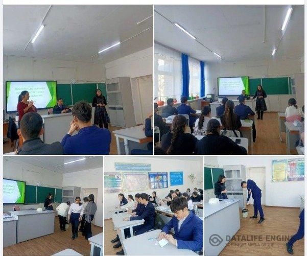 Ағымдағы айдың 19 күні мектеп психологы З.Алиева жоспарға сай "Жасөспірімдер арасында аутодиструктивті мінез- құлықтың алдын алу" тақырыбында 9-10 сынып оқушыларымен семинар- тренинг өткізіп, сауалнама алды. АПБ ЮПТ инспекторы полиция капитаны А.Пирматов түсіндірме жұмысын жүргізді.