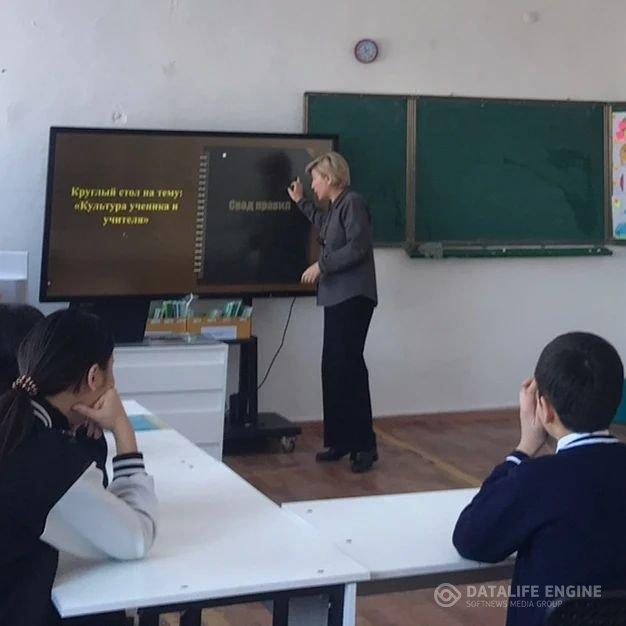 Руководитель 8 класса Санбаева Н.Т. провела круглый стол с учащимися 8 класса на тему "Культура ученика и учителя". Проблема взаимоотношений учащихся и учителей является одной из самых важных и сложных в психологической науке и воспитательной деятельности. Если для детей младшего школьного возраста Учитель является личностью, которая оказывает на них сильное влияние, оставляя особый след во всем своем образе, то взрослые дети по-своему внутренне критикуют каждое движение учителя, его действия и речь, его советы, его отношения с другими людьми, различные требования, которые он предъявляет к ученикам. Круглый стол был проведен путем обмена мнениями, где учащиеся высказывали свои взгляды, приводя примеры из разных вещей, происходящих в обществе.