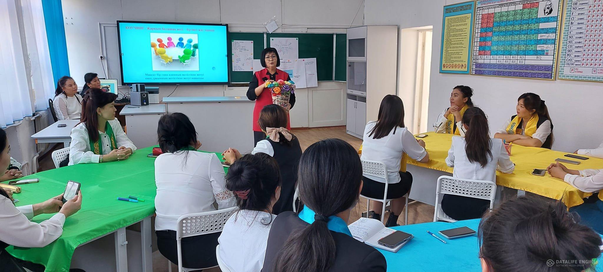 2023.11.01 күні мектебімізде жас мамандардың кәсіби құлшынысын арттыру, жігерлендіріп көңіл күйін көтеру, жас мамандардың өзіндік ашылуына, өз әріптестеріне өздерін көрсете білуіне, педагогикалық ұжымның бір бөлшегі ретінде сезінуіне, бейімделуіне ықпал жасау, қолдау көрсету мақсатында мектеп басшысы Ардақ Толепбайқызы "Жарқын болашақ иесі- бүгінгі жас маман" тақырыбында коучинг өткізді.Алдымен барлық жас мамандар дөңгелене тұрып, себеттегі гүлді алып, бүгінгі іс -шарадан не күтетіінін, игі тілектерін білдіріп, жағымды ахуал орнап, қолдарындағы гүлдер арқылы топтарға бөлінді.Келесі кезекте "Жабайы қаздардың өзара топтық ынтымақтастық жайлы бес сабағы" (Милтон Ольсон бойынша) видеосы көрсетіліп, әр топ жабайы қаздардың ұшу кезіндегі