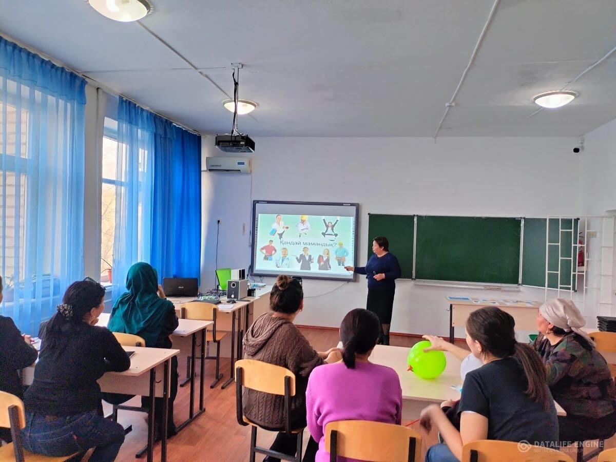 Төле би атындағы орта мектебінде АТА-АНАЛАРДЫ ПЕДАГОГИКАЛЫҚ ҚОЛДАУ БАҒДАРЛАМАСЫНЫҢ жұмыс жоспарына сәйкес кәсіби бағдаралды жұмыстарының үйлестірушісі К.М.Муканова жоғары сынып ата аналарымен “Балаға мамандық таңдауға қалай көмектесуге болады?” тақырыбында сабақ өткізді. Сабақ жасөспірімнің мамандық таңдауында ата-ана тап болатын қиындықтарды азайтуға,