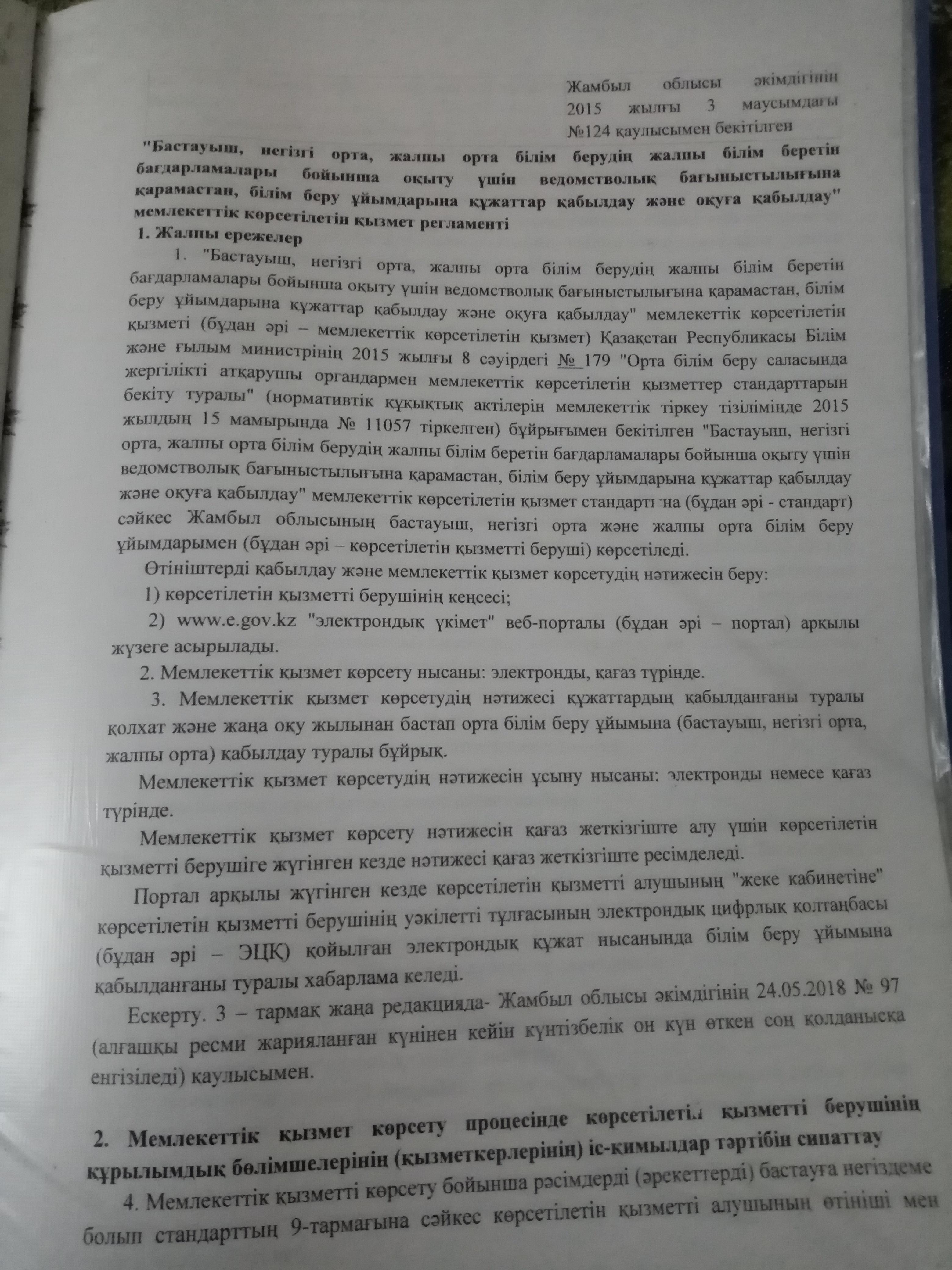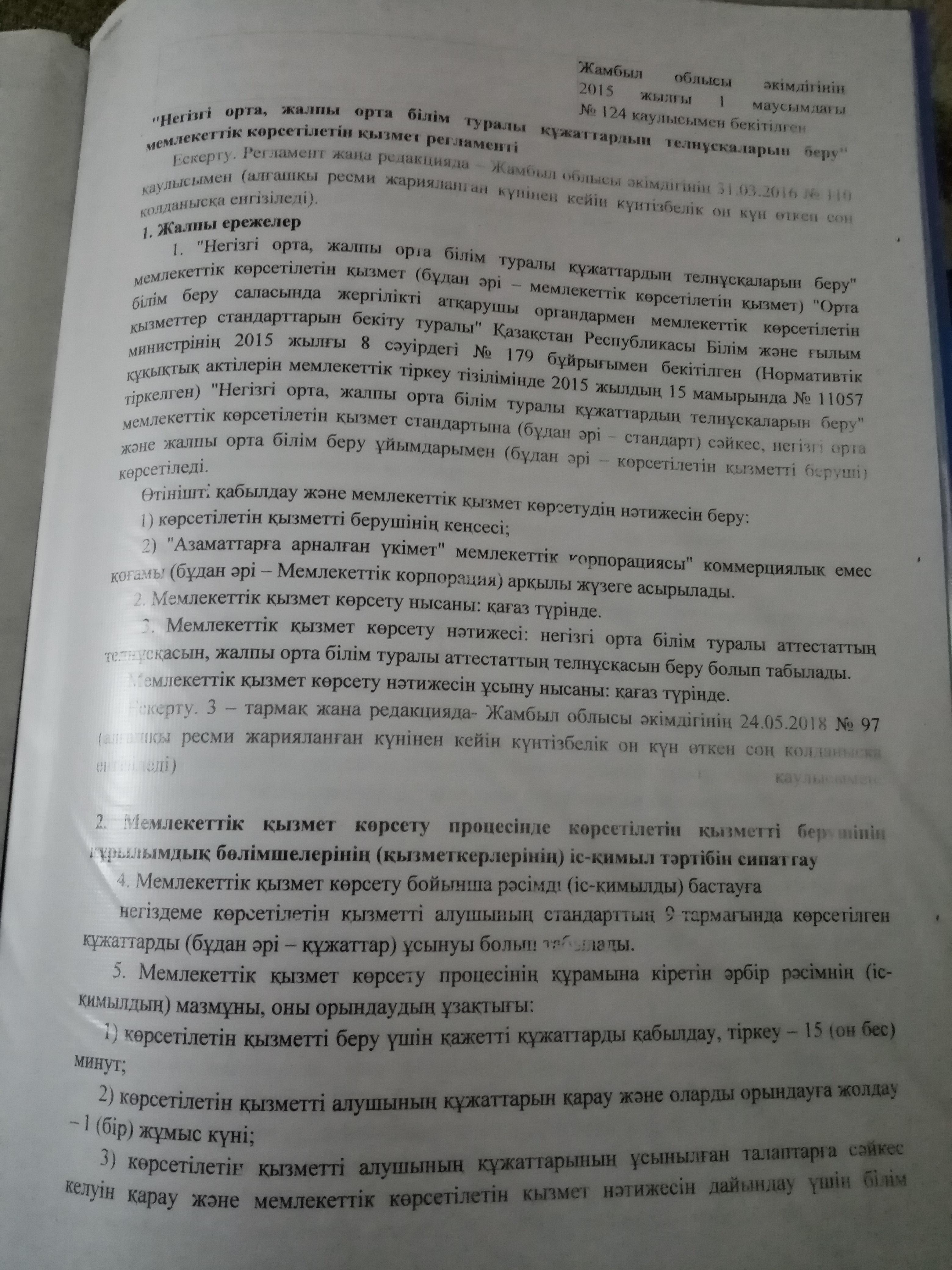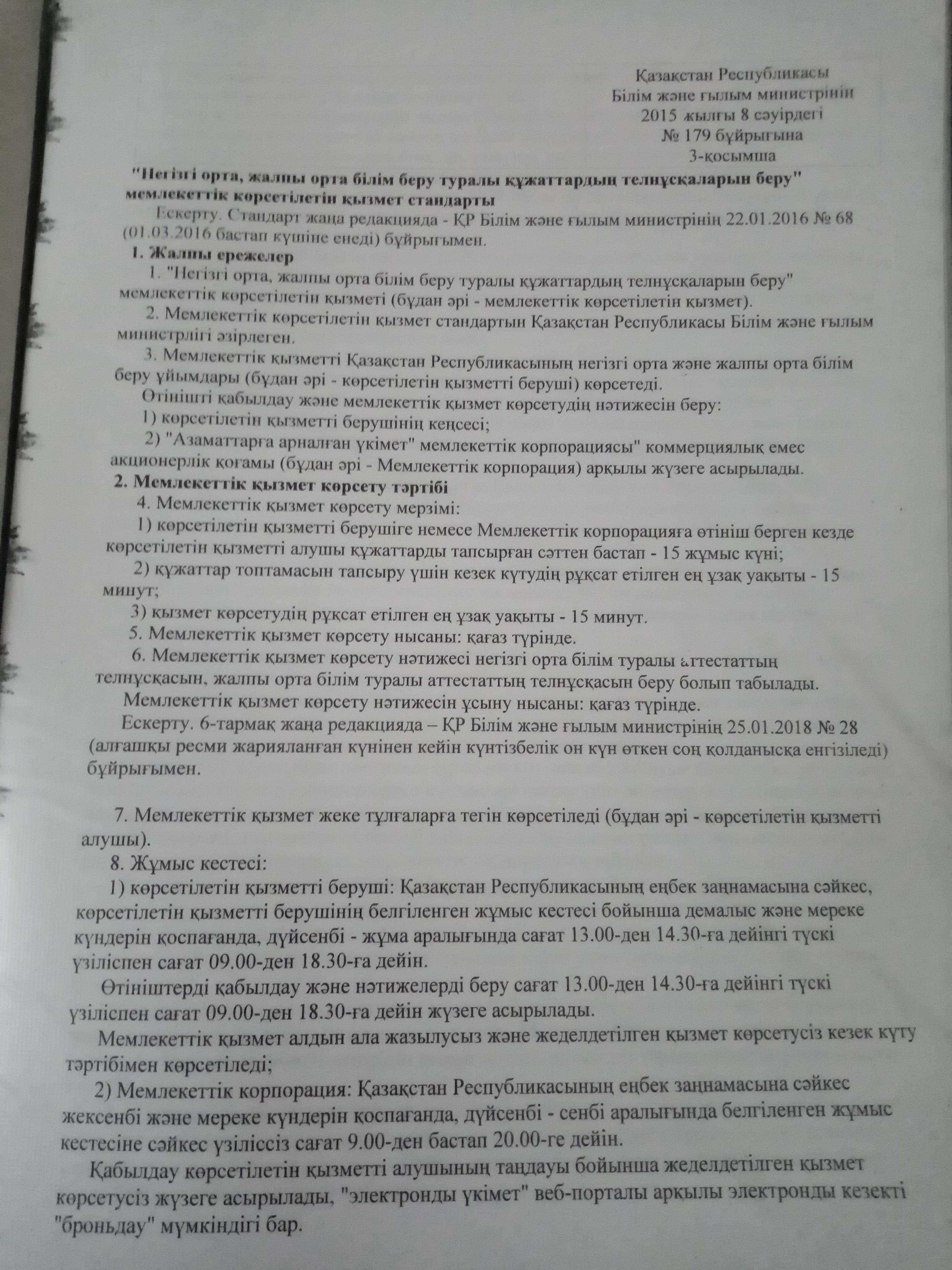 20 июнь 2020 0 1 2 3 4 5 Орта білім беру саласында жергілікті атқарушы органдармен мемлекеттік көрсетілетін қызметтер стандарттары