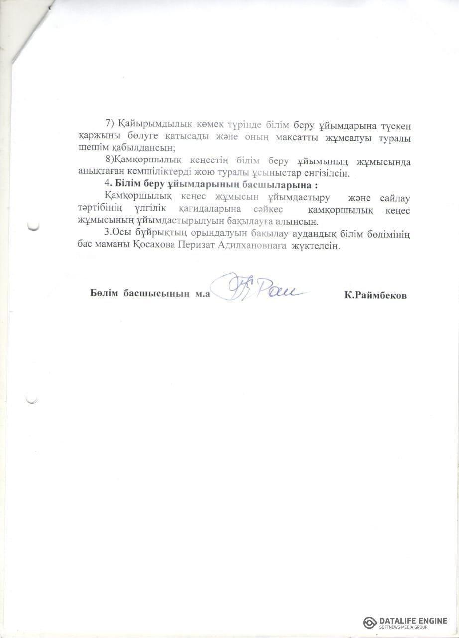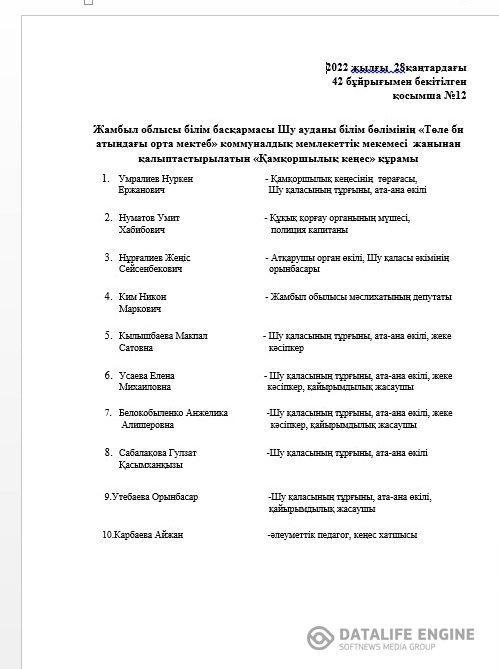 Қамқоршылық кеңесінің құрылуы туралы бұйрық » Төле би атындағы орта мектеп