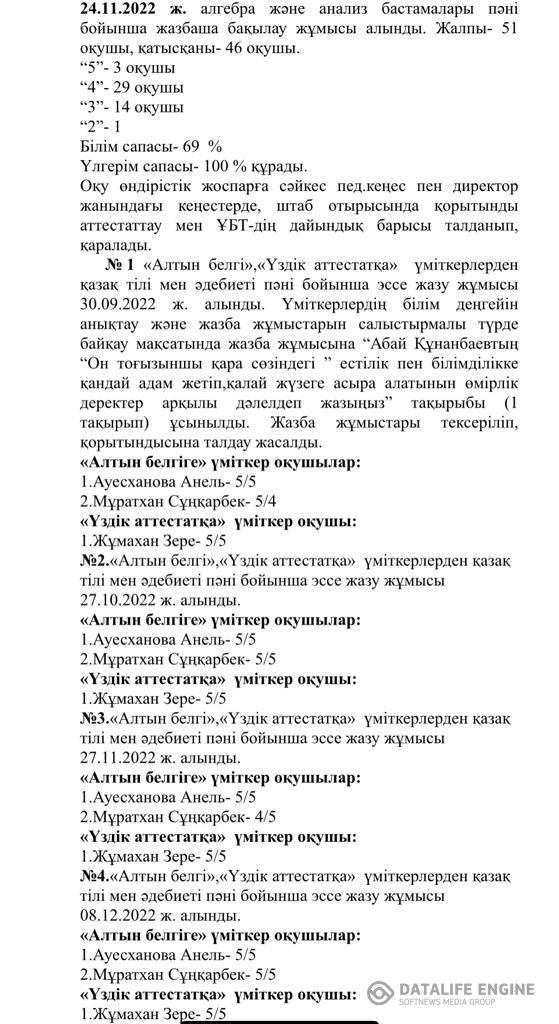 » » » 2022-2023 оқу жылында 11 сынып оқушыларын негізгі пәндер бойынша қорытынды аттестаттауға және ҰБТ-ге дайындық барысы туралы