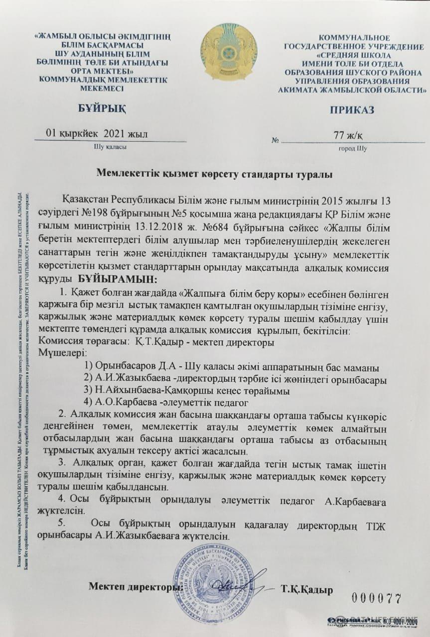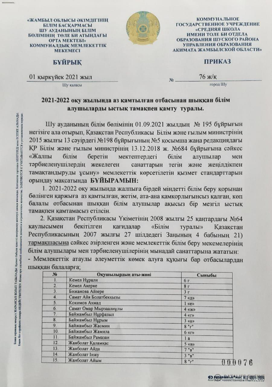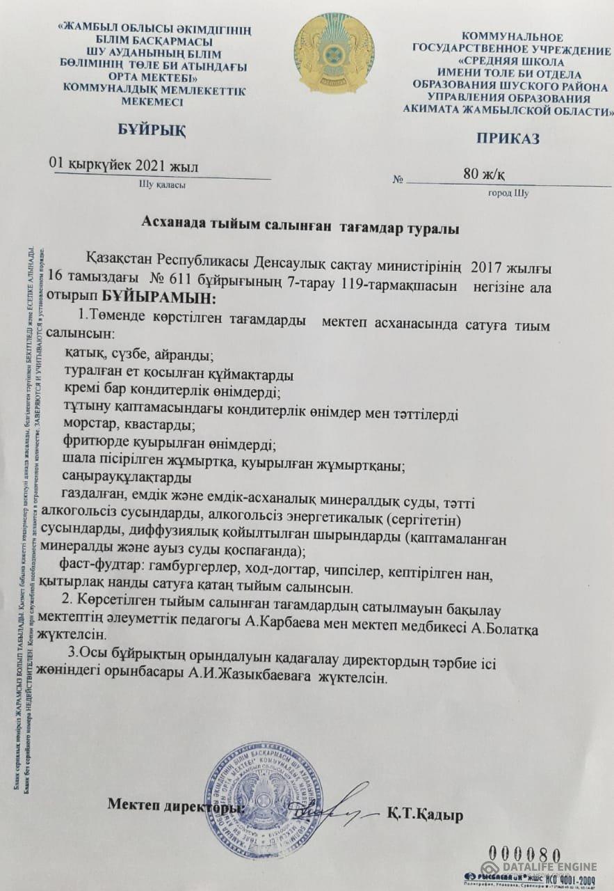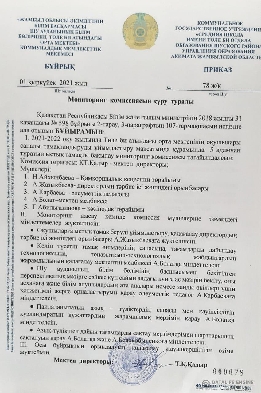 02 сентябрь 2021 0 1 2 3 4 5 Шу қаласы, Төле би атындағы орта мектебі бойынша 2021-2022 оқу жылындағы ыстық тамақтың ұйымдастырылуы