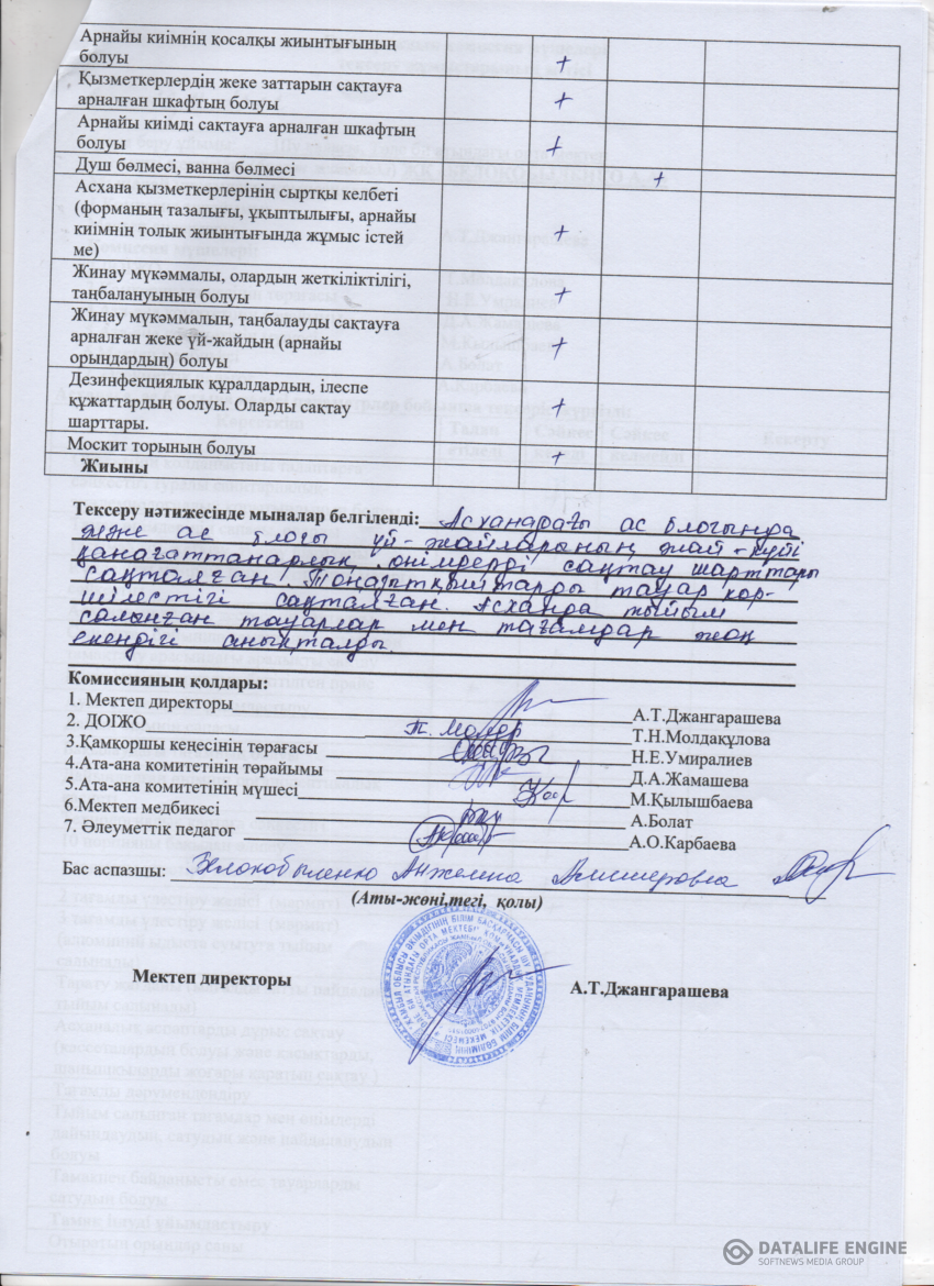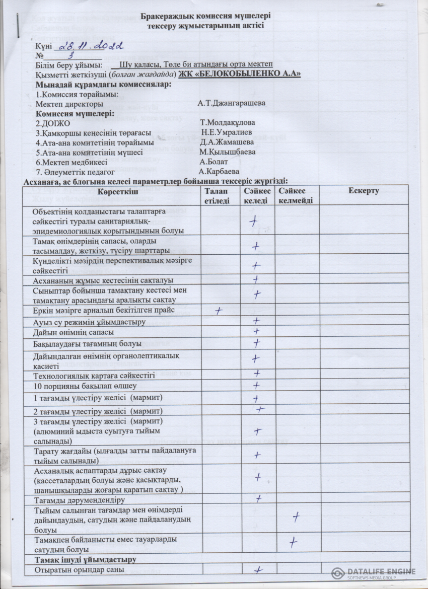 Бракераж комиссия мүшелерінің тексеру жұмысының актісі » Төле би атындағы орта мектеп