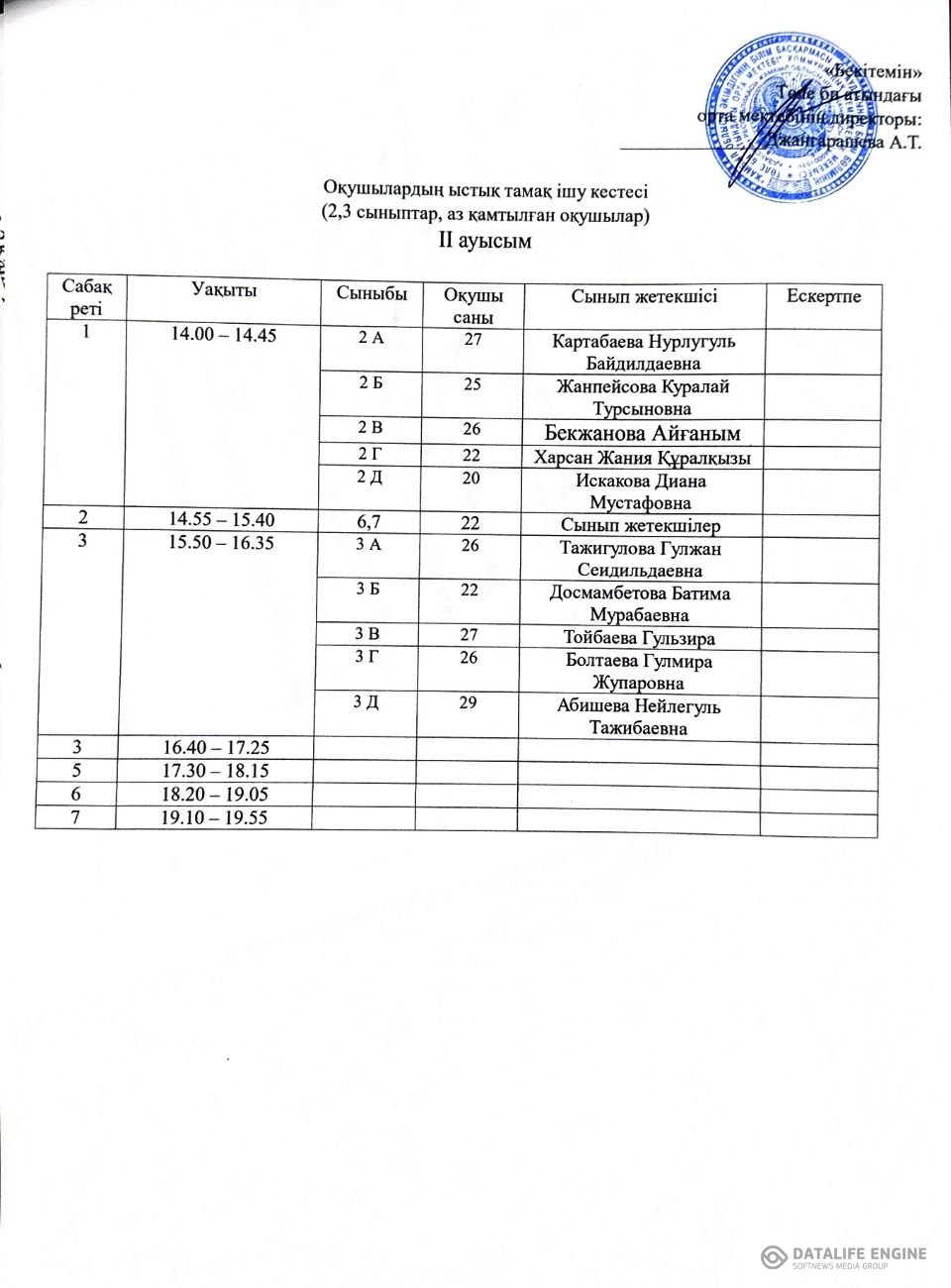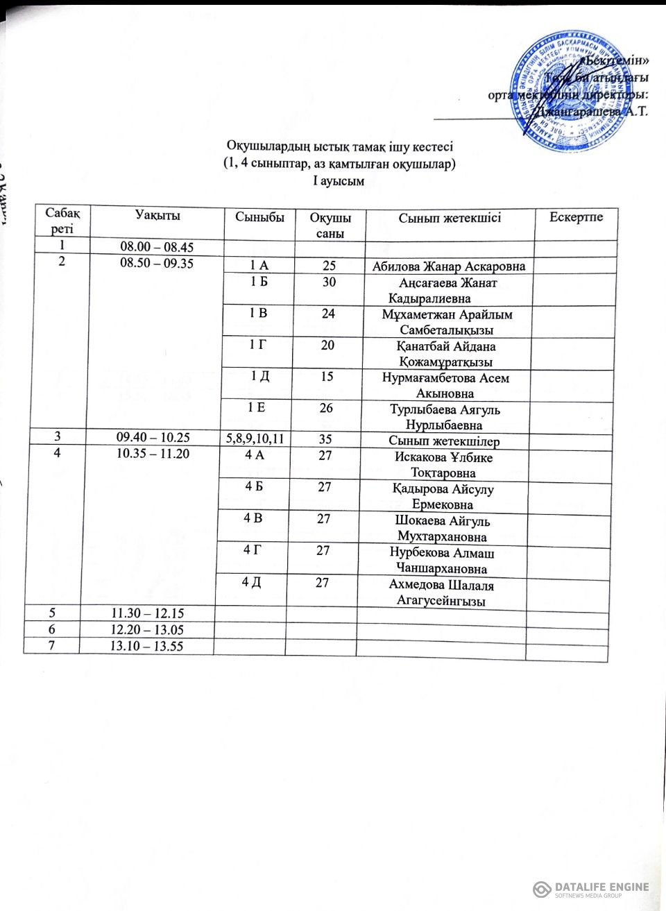 » » Оқушылардың ыстық тамақ ішу кестесі