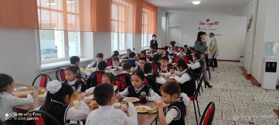 Мектеп асханасында тамақтану Қазақстан Республикасы Денсаулық сақтау министрінің 2021 жылғы 5 тамыздағы № ҚР ДСМ-76 бұйрығымен білім беру ұйымдарындағы қоғамдық тамақтану объектілеріне қойылатын талаптарға сәйкестігін қадағалау мақсатында бракераждық комиссия төрайымы мен мүшелері мектеп директоры А.Т.Джангарашева, ДТІЖО Т.Н.Молдақұлова, Имашева А.Ж., әлеуметтік педагог С.С.Харсанова, медбике А.Болат пен ата ана А.Е.Аймамбетова мониторинг жүргізді. Балалардың тамақтану сапасын анықтау мақсатында бракеражды комиссиясы құрылып, жеткізілетін тамақ өнімдерінің сапасын, білім беру ұйымдарында тамақ өнімдерін дайындау және өткізу кезінде санитариялык-гигиеналық талаптар қатаң сақталып, ай сайын АКТ толтырылып, мониторинг жүргізілуде. Мектептегі тегін және жеңілдетілген ыстық тамақпен қамту жұмыстарын ұйымдастыру және асханада кезекшілік кестесі және тамақтану кестесі жасалған.