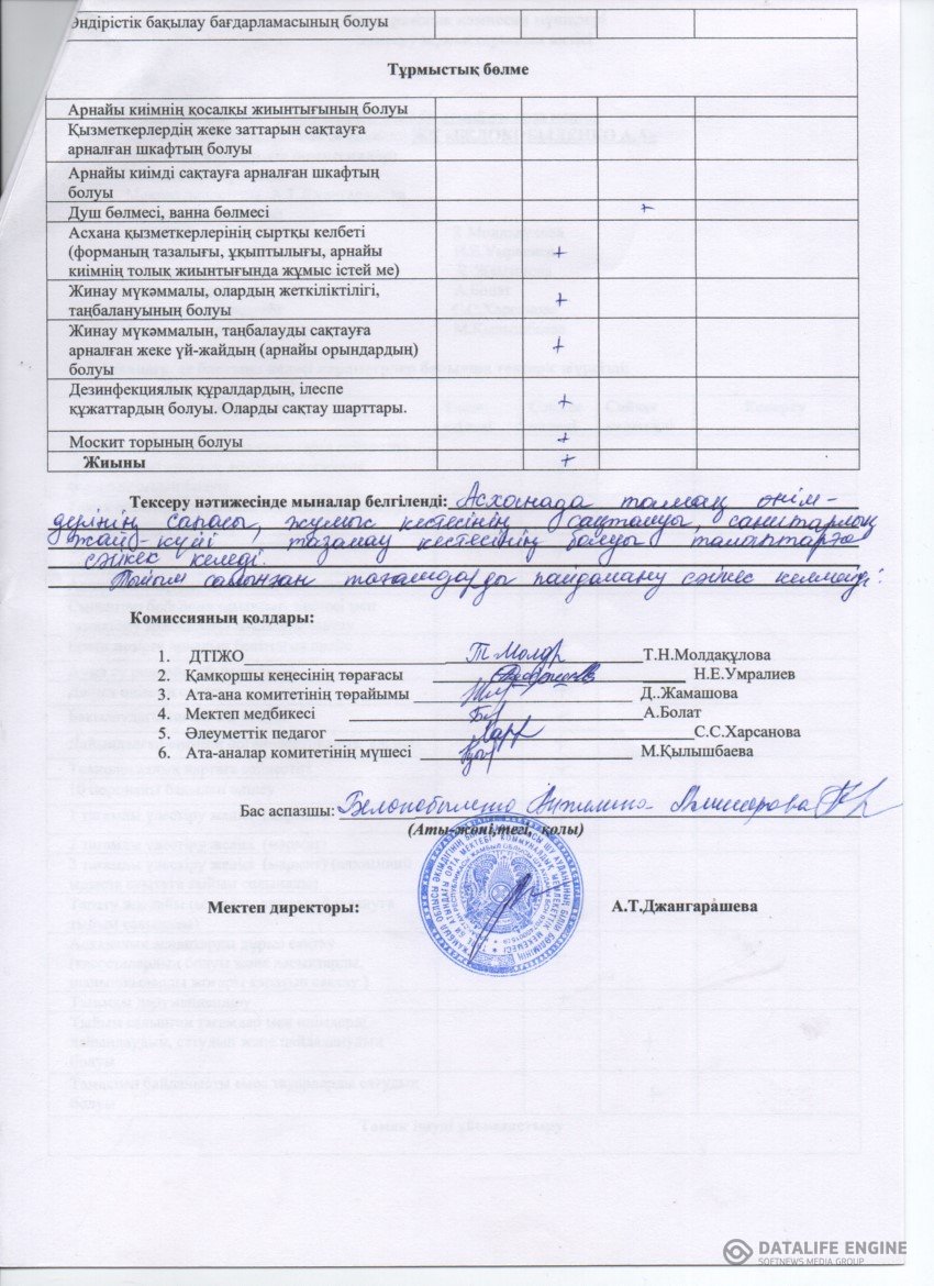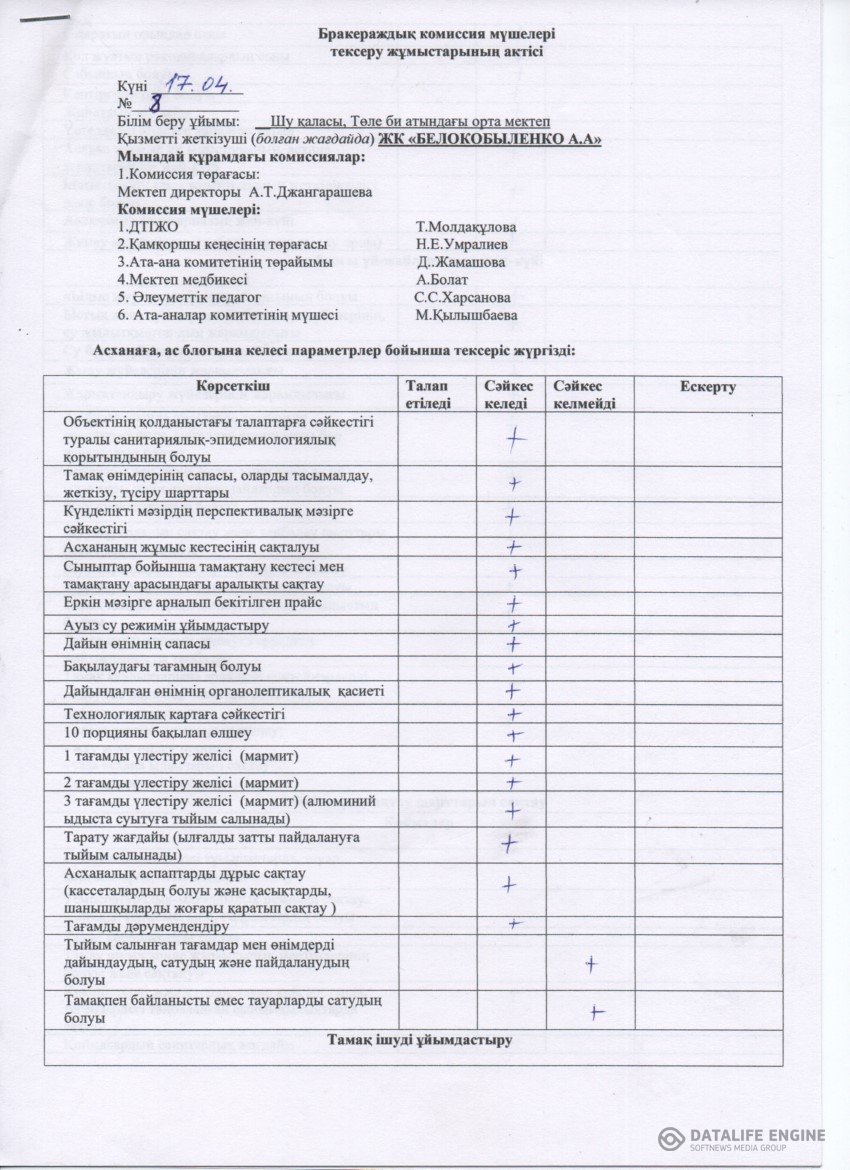 Бракераж комиссия мүшелері тексеру жұмысының актісі » Төле би атындағы орта мектеп