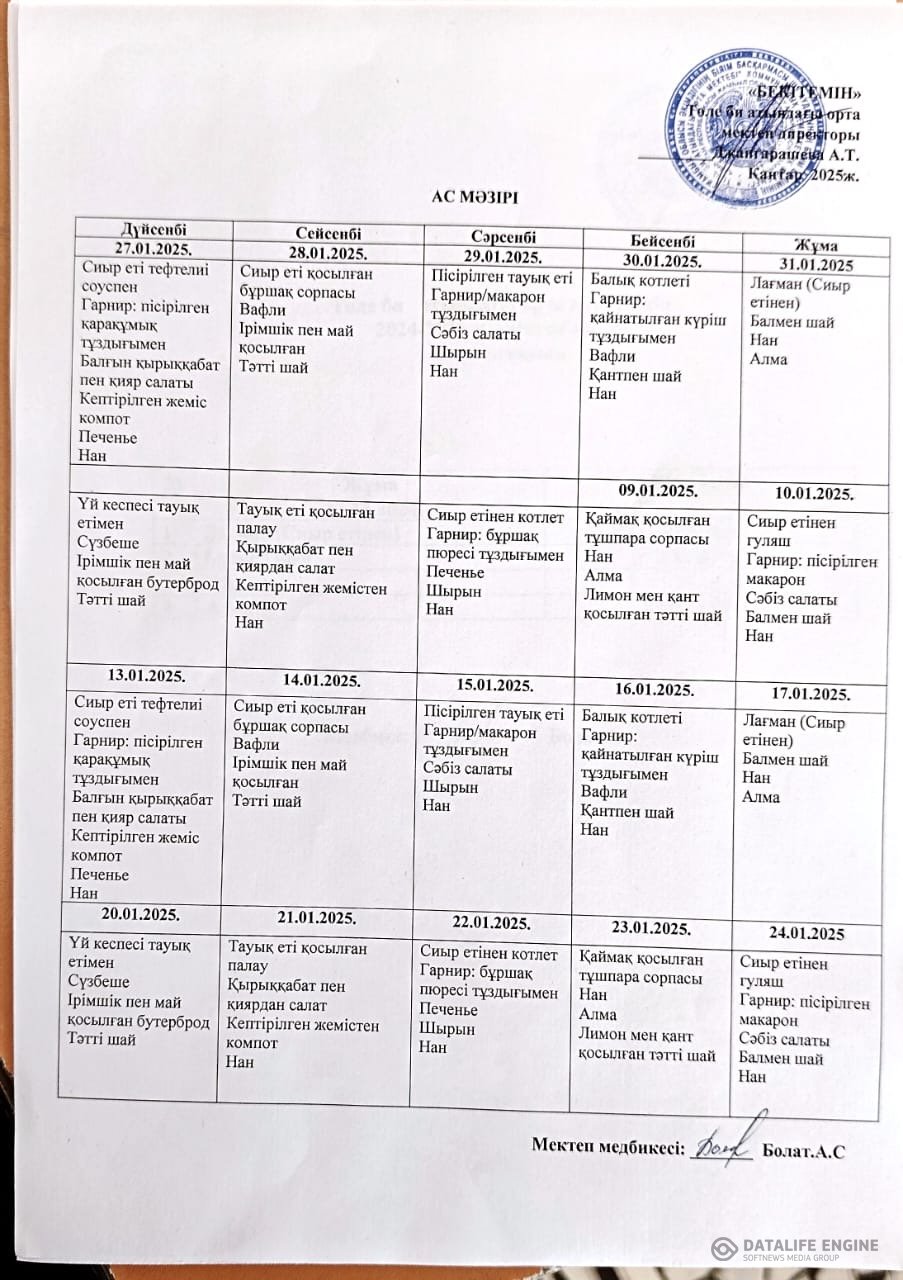 Қаңтар айының ас мәзірі » Төле би атындағы орта мектеп