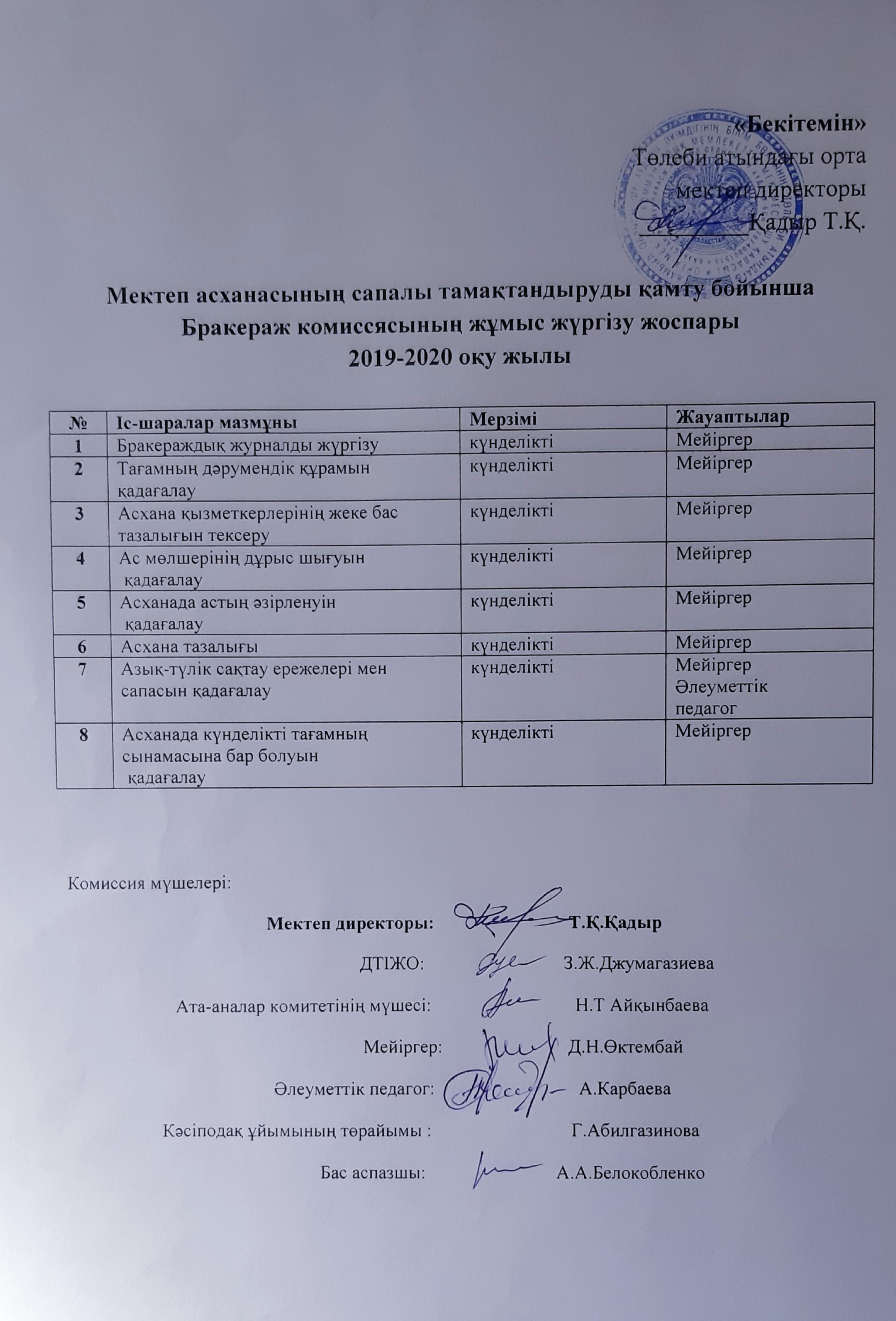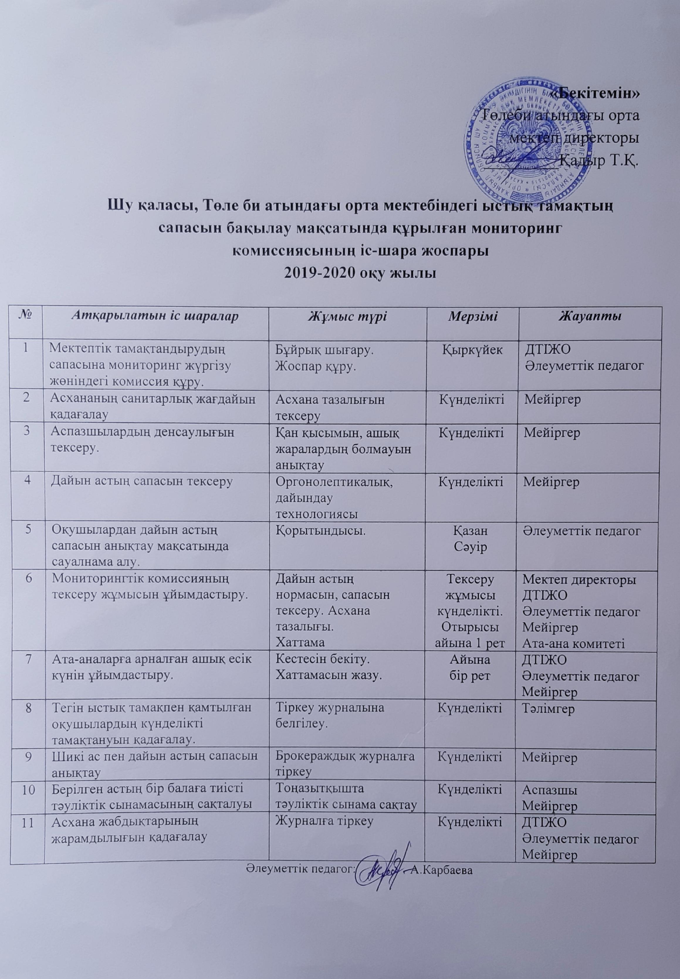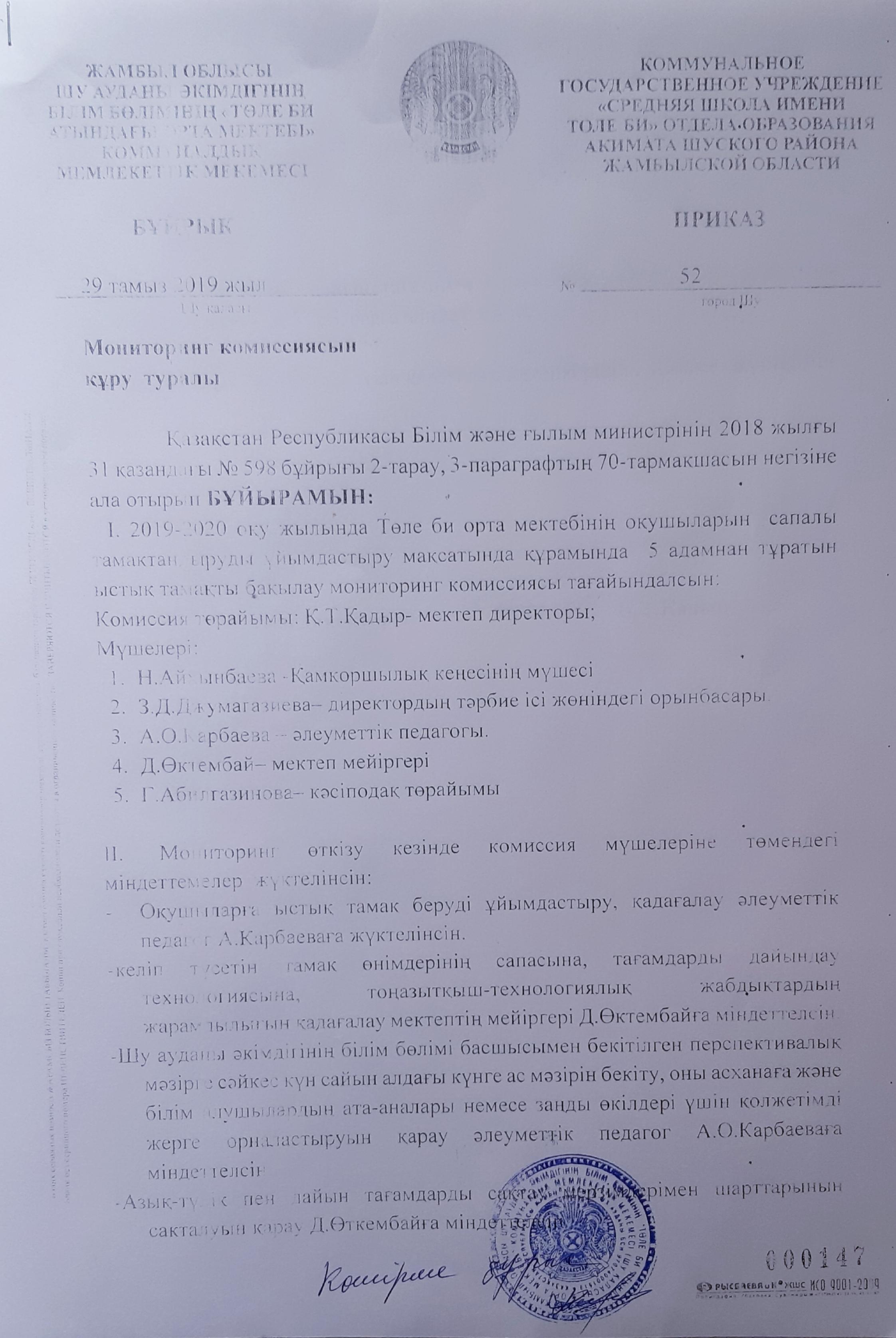 Ыстық тамақты ұйымдастыру » Төле би атындағы орта мектеп