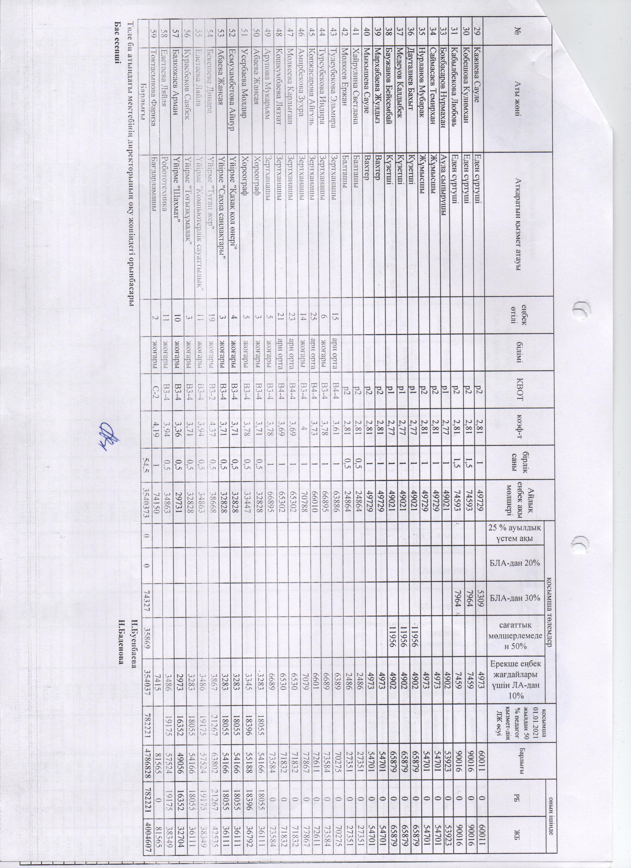 Тарификация қаңтар, 2021 жыл » Төле биСредняя школа имени