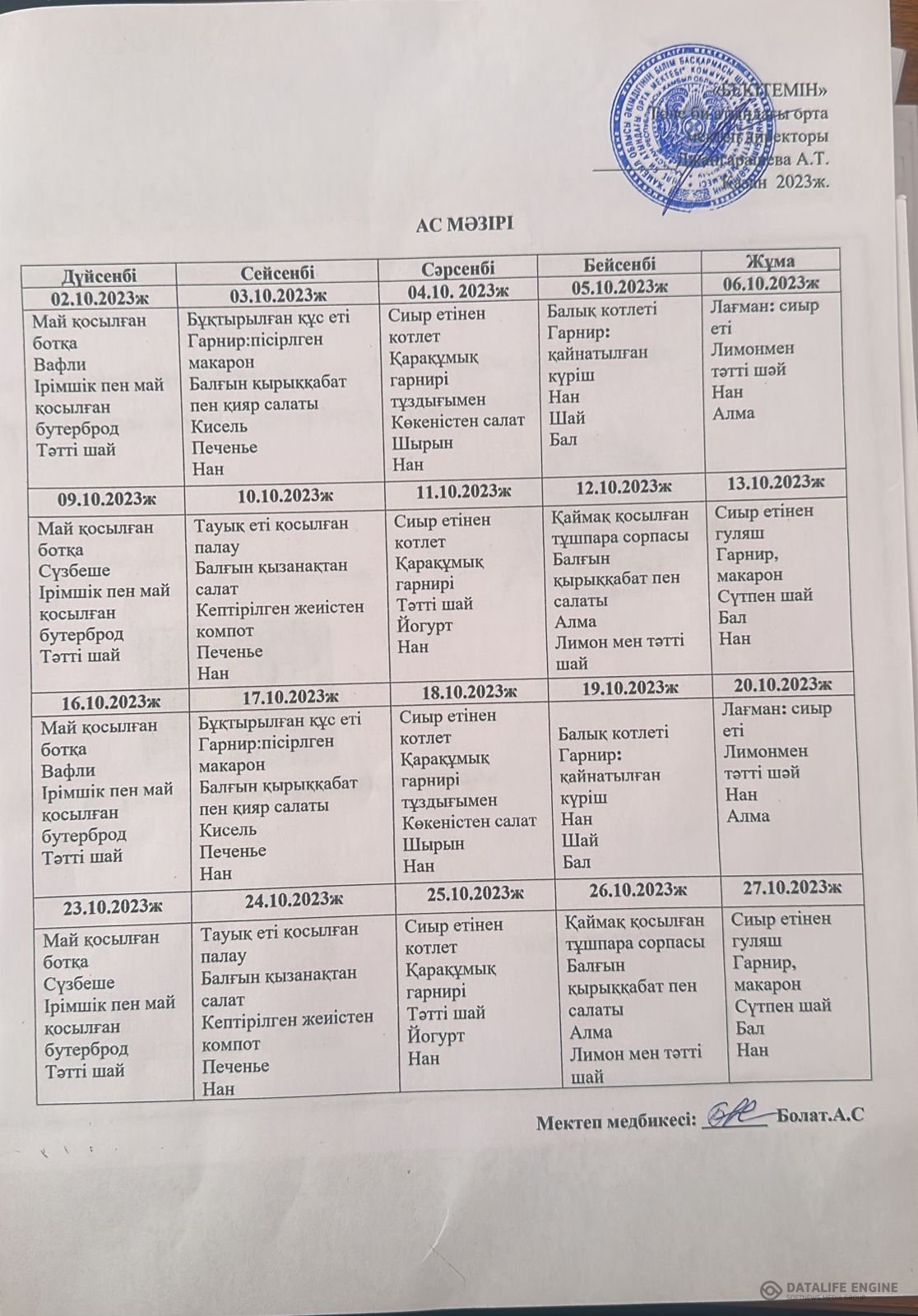 Қазан айына арналған ас мәзірі » Төле биСредняя школа имени